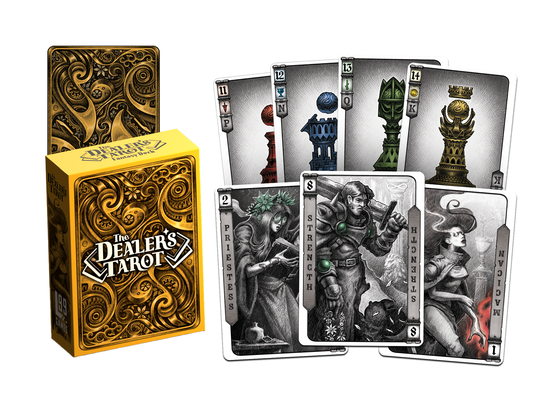Features numbered corner indices, ideal for playing games from the companion book, the Dealer's Tarot (sold separately).